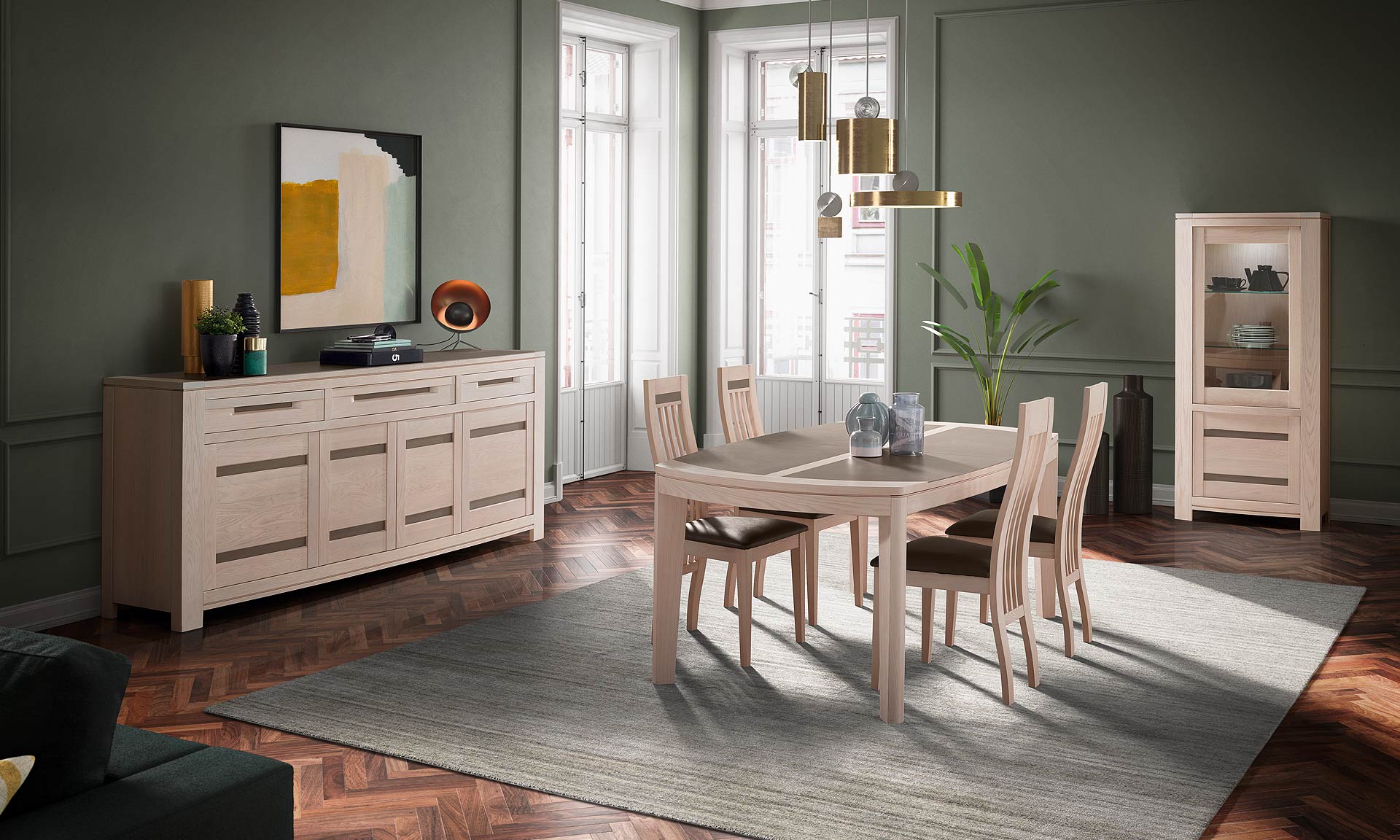 Chêne massif, panneaux de particules placage chêne, médium plaqué chêne. 2 teintes aux choix.